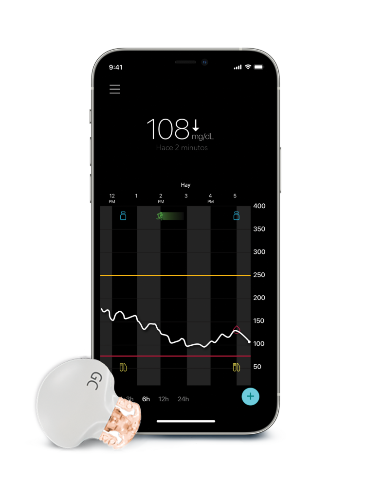 El sistema de MCG está en el lugar y momento en que lo necesitas, siempre listo para mostrarte a ti y a tus familiares cercanos, tus niveles reales de glucosa directo en la pantalla de un teléfono inteligente.